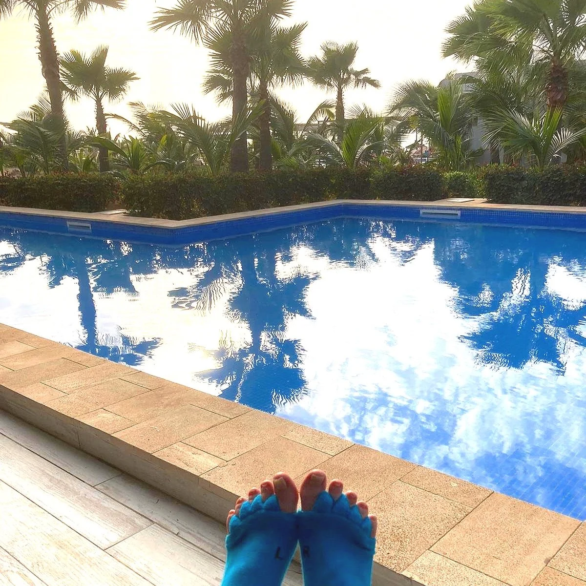 I am very impressed to see these toes being stretched by the pool with the Toe Spreader Socks 🧦